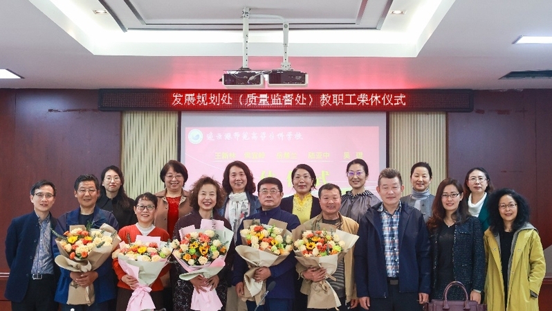 3月8日下午,发展规划处(质量监督处)在玖兴楼A216会议室举行了王新林、侯宜岭、岳慧兰、陆亚中、吴琨五位退休教师的荣休仪式。校工会主席赵明、发展规划处(质量监督处)处长韦汇余及部门全体人员见证了这温暖的时刻。荣休仪式由副处长龙彦主持。
