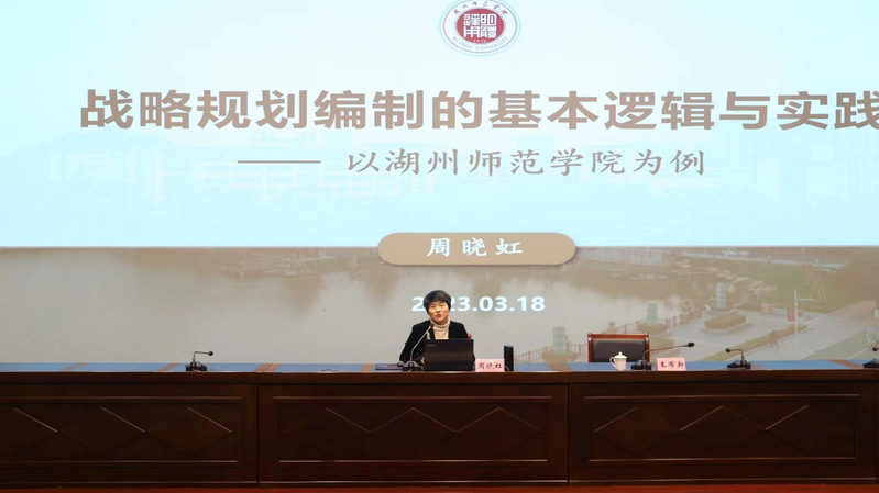 湖州师范学院发展规划处处长周晓红教授讲座题目为《战略规划编制的基本逻辑与实践》。周晓红教授从湖州师院改革发展历程、战略规划编制基本逻辑、湖州师院五年规划解读展开深入阐释。她提出党代会报告为学校的最高规划,她以湖州师院4次党代会为例,从报告主题、指导思想、战略目标概述了高校规划编制工作的艰巨性及发展趋势,强调了规划要具有全局性和前瞻性,指出规划的制定要把握好目标设定的科学性、合理性、延续性和战术性。讲座内容站位高远、深入简出,为我校完善升本办学规划提供了宝贵经验。