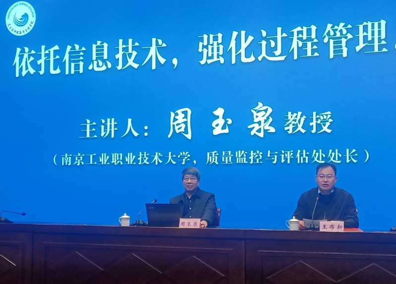 南京工业职业技术大学质量监控与评估处处长周玉泉教授做了《依托信息技术,强化过程管理,完善内保体系》的培训。周玉泉教授从内部质量保证体系建设存在的主要问题、完善内部质量保证体系的基本原则、基于信息技术的内部保证体系建设实践三个方面介绍了职业院校教学质量内部质保体系的构建情况,并结合南京工业职业技术大学内部质保体系建立和运行的经验,从基本架构、运行模式、教师考核评价、监控平台使用进行详细的讲解,对于进一步加强我校教学质量体系构建方面具有很强的针对性和指导性。